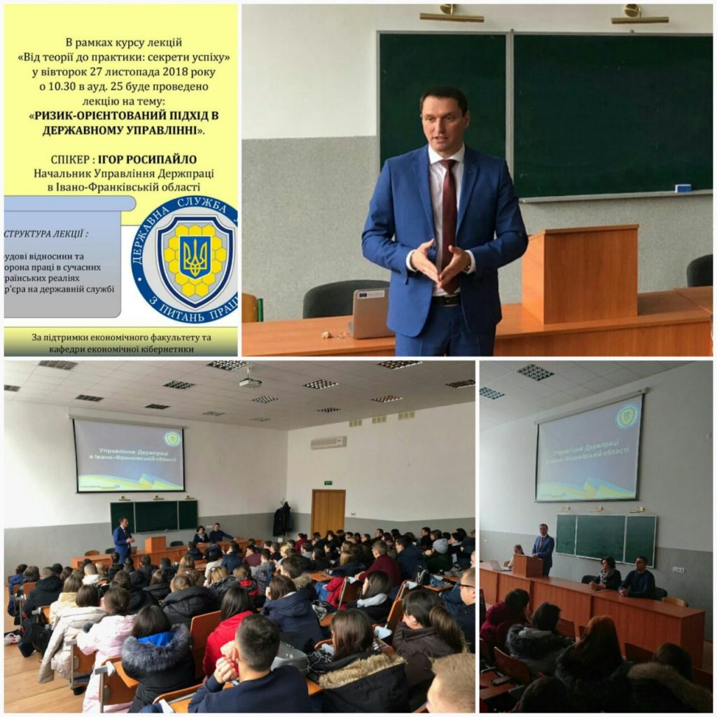 В рамках курсу «Від теорії до практики: секрети успіху» у вівторок 27 листопада 2018 року було проведено лекцію на тему: «РИЗИК-ОРІЄНТОВАНИЙ ПІДХІД В ДЕРЖАВНОМУ УПРАВЛІННІ». Спікером виступив Ігор Росипайло – начальник управління Держпраці в Івано-Франківській області. Студенти економічного факультету мали Читати далі