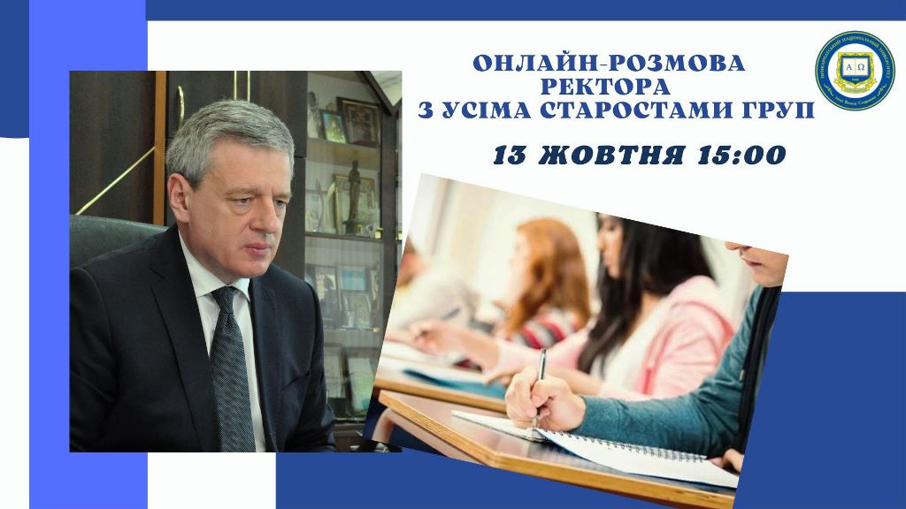 13 жовтня о 15.00 відбудеться робоча онлайн-зустріч ректора Прикарпатського національного університету імені Василя Стефаника Ігоря Цепенди зі старостами всіх академічних груп денної і заочної форм навчання інститутів, факультетів та коледжу ПНУ. Приєднання до онлайн-зустрічі за посиланням: https://pu.webex.com/pu-ru/j.php?MTID=mc0c31875d33ec806359c8db9cc67a355