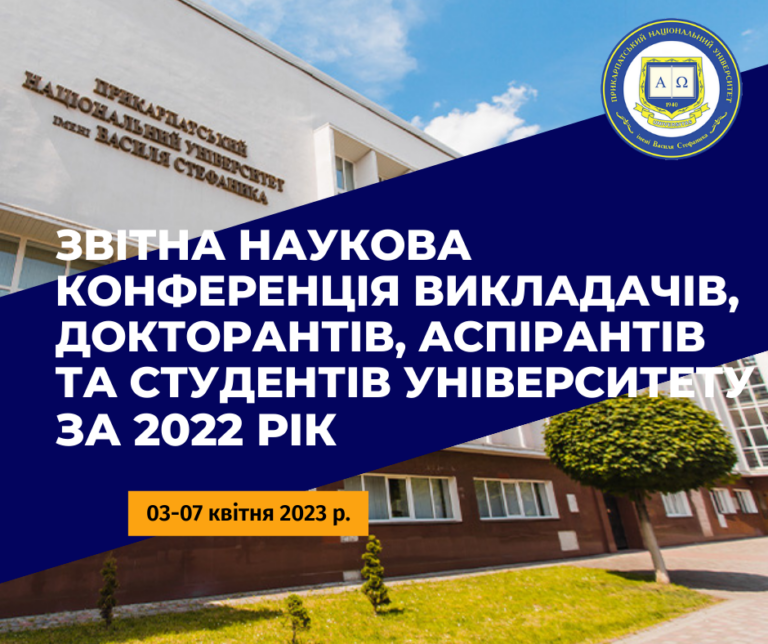 Ректорат Прикарпатського національного університету імені Василя Стефаника запрошує вас узяти участь у звітній науковій конференції викладачів, докторантів, аспірантів та студентів університету за 2022 рік, яка відбудеться 03–07 квітня 2023 року. ОГОЛОШЕННЯ проведення звітної конференції у 2023 році завантажити ПРОГРАМА звітної наукової конференції Читати далі