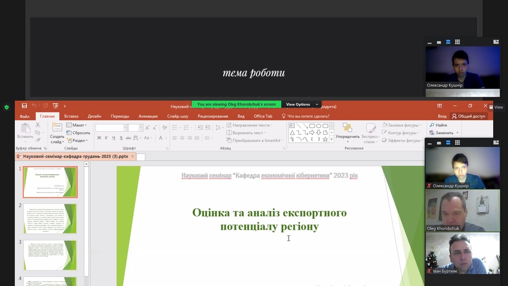 Наукові семінари проводяться щотижня кафедрою економічної кібернетики, на яких аспіранти, викладачі кафедри, науковці звітують про результати особистих наукових досліджень. Після доповідей відбувається їх активне обговорення, висловлюються зауваження та даються рекомендації. Проведення наукових семінарів допомагає молодим науковцям проаналізувати результати власних досліджень, виявити сильні та слабкі сторони, та отримати корисні поради щодо подальших досліджень.