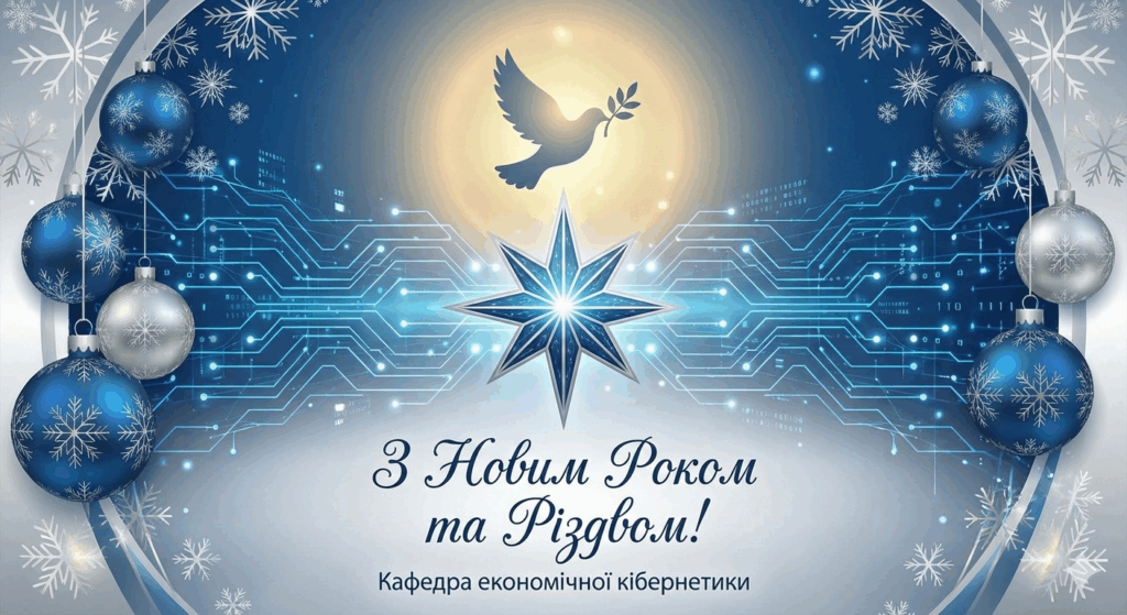 Шановні колеги та дорогі студенти! Створи зображення для розміщення на сайті для цього привітання без тексту “Колектив кафедри економічної кібернетики щиро вітає вас із прийдешнім Новим роком та Різдвом Христовим! Минає ще один рік, сповнений складних викликів, але саме вони Читати далі